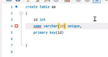 위와 같이 이름을 기본키로 쓸 경우 Unique 유니크 속성값을 주면 됨
