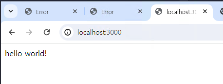 const express = require("express") const app = express() const port = 3000 app.get('/',(req, res) => { res.send('hello world!') }) app.listen(port, () => { console.log(`서버가 실생됩니다. http://localhost:${port}`) })Listen을 빼면 get이 들어왔을 때 응답을 하지 못한다 (get을 듣지 못한다). 이럴 경우 우리는 흔히 서버가 응답이 없다고 들었을 것이다.