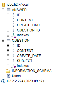 Question과 Answer 테이블이 자동으로 생성된 것을 확인할 수 있다.